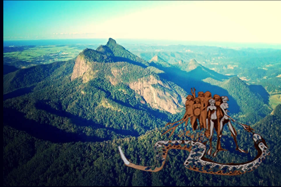 Rainbow Serpent mythology is closely linked to land, water, life, social relationships, and fertility. Locally, it is irrevocably linked to the Wiangaree, or Seven Sisters, in this ancient landscape. Wiangaree is located on the border of Ngrakbul Githabul (Geological creation of this land).