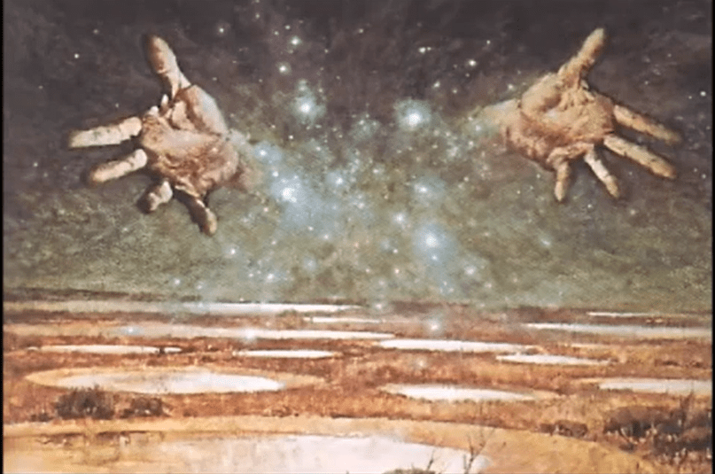 Ainsley Roberts’ ( 1926 – 1993) painting of the Seven Sisters or Wiangaree (Pleiades) and water from space, from God.
